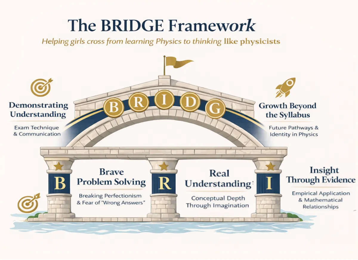 At the heart of everything we do is the BRIDGE Framework — a structured, proven approach designed to help girls thrive in A-level Physics.