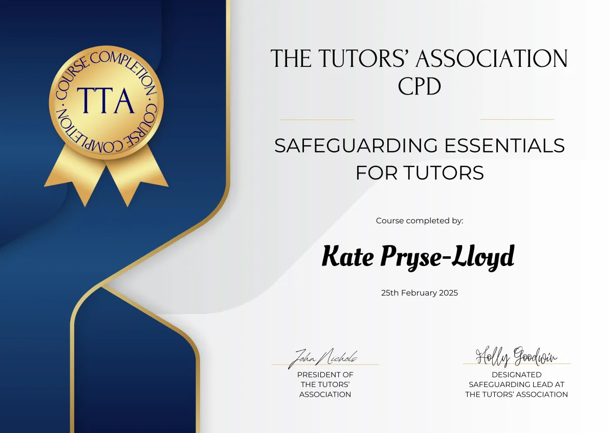 Kate Pryse-Lloyd is committed to the wellbeing and safeguarding of all children, adults and staff who attend tuition with them. This policy’s main aim is to provide all children and adults with a comprehensive, secure and clear commitment to safeguarding and a framework to ensure all children attending Physics With Kate are protected from harm.